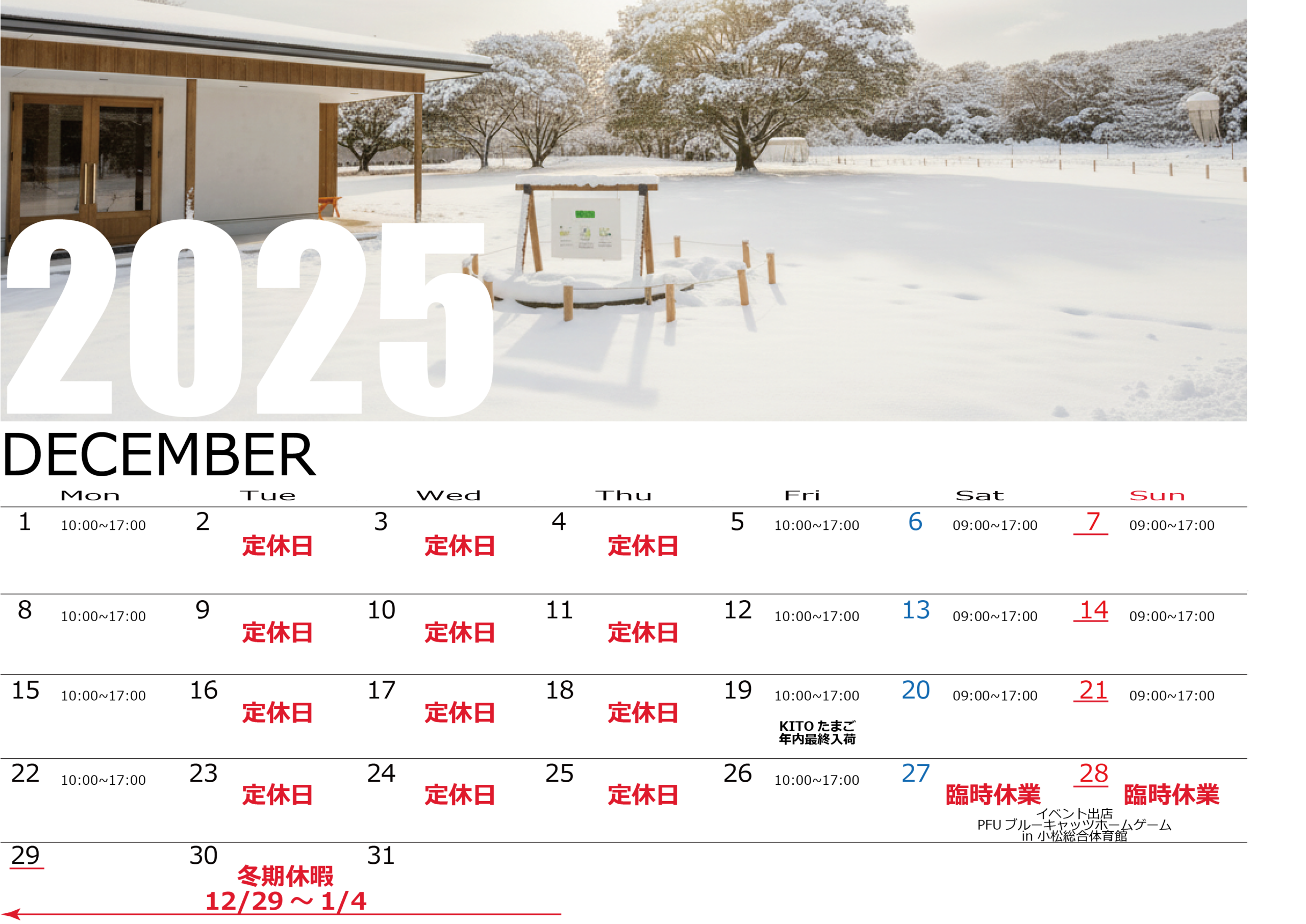 KITO #キト #夢農場グループ #かほく市高松 #かほく市 #高松 #定休日 #火曜日 #水曜日 #木曜日 #ドッグラン #たのしい #わんちゃん #カレンダー #12月 #DECEMBER